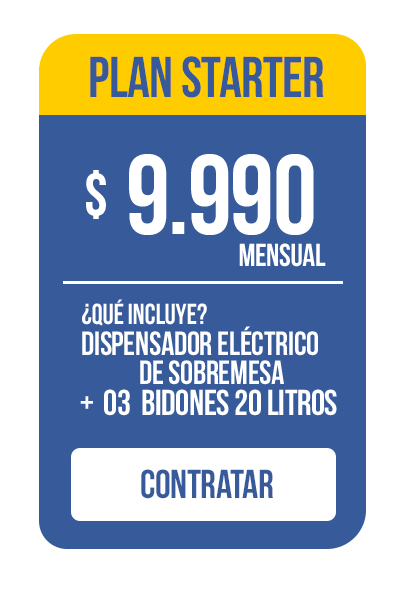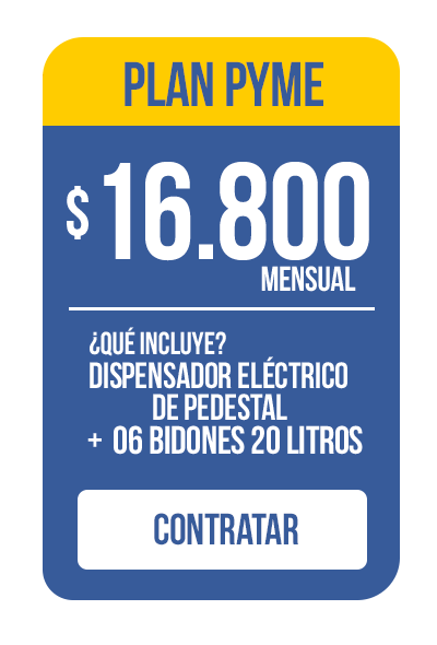 Ya sea que manejes un restaurante que necesita asegurar la pureza del agua en la preparación de alimentos, una tienda que ofrece agua purificada a sus clientes, o un establecimiento educacional que cuida del bienestar de sus profesores y alumnos, nuestros planes de agua purificada son la elección perfecta. Nos encargamos de todo, desde la instalación hasta el mantenimiento.